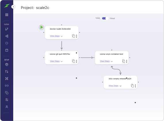 From drag-and-drop DAG-aware pipelines to the health of deployments and instant rollbacks, Ozone provides a new visual experience to simplify and automate CD.