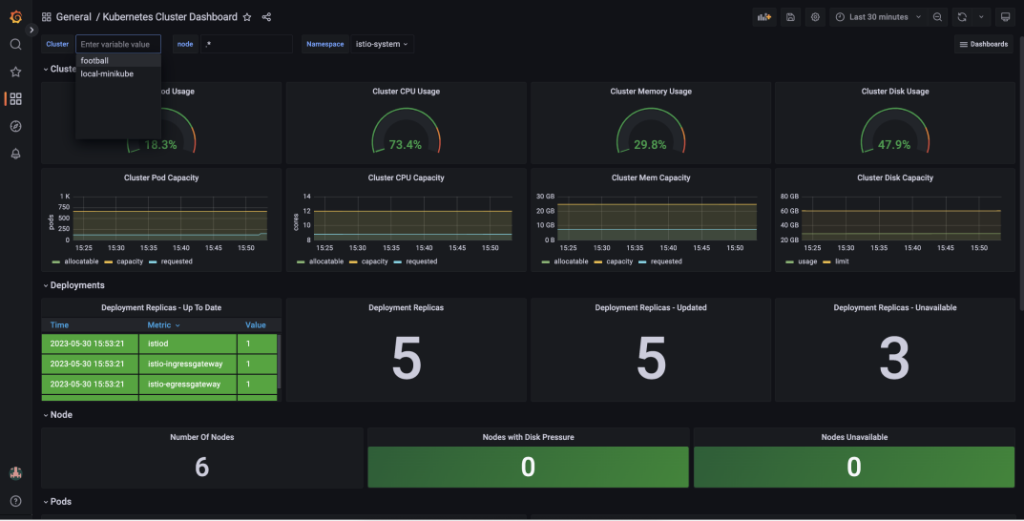Negate the need of switching between multiple dashboards with a single interface that enables comprehensive monitoring of multiple clusters in a unified view.
